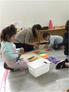 Children from 2 years of age will be guided to understand that in a social group there are certain normalities that need to be respected and followed such as putting things back in their place, working through a book page by page, completing tasks, not disturbing others at work and keeping their environment tidy.