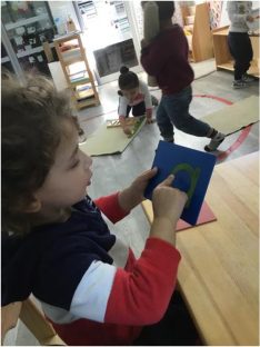 By the time our pre-schoolers turn 4 and 5 years of age, they will learn to write spontaneously, work with numbers and quantities in the 1000’s, complete addition, gain geographic, cultural, scientific knowledge and much more by using concrete materials. They will also be able to work on their own without being prompted.